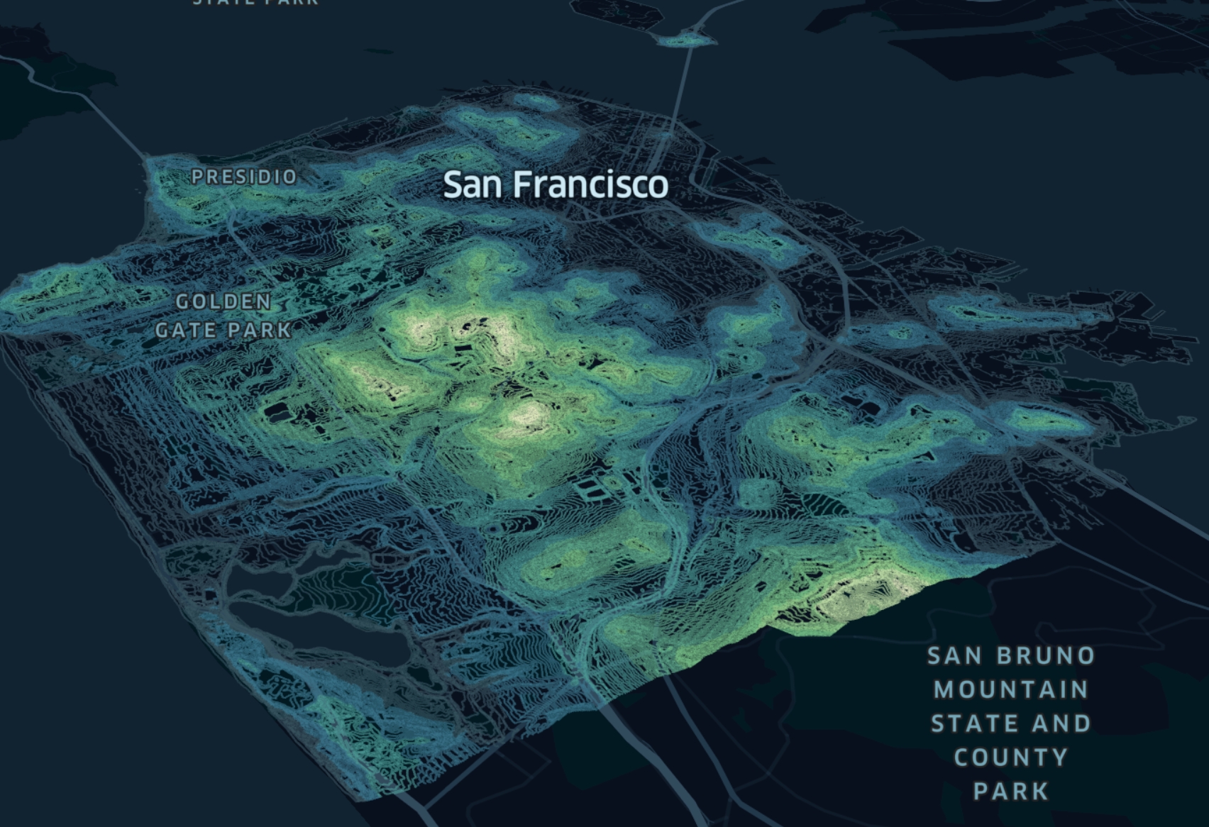 A path GeoJSON layer can display data like trip routes or contours. Stroke color can be set with a numerical field.